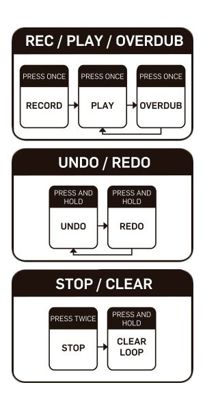 So how does it work? As there is only one switch and one knob there isn’t a lot to learn. All looping functions are controlled by the footswitch as shown in the diagram.